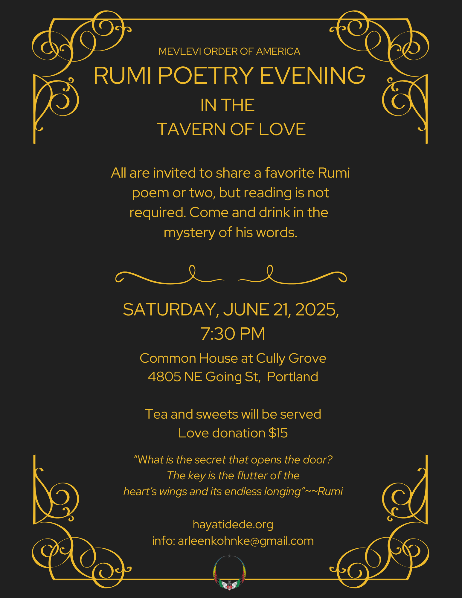 Mevlevi Order of America August 31 – September 5, 2024 For information please contact Khalid Kramer, retreat registrar, at moaregistrar@gmail.com . |